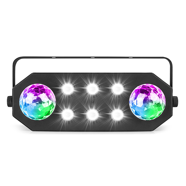 2-in-1 Effect with Derby and high power white LED beams Derby effect with 6x 4W...