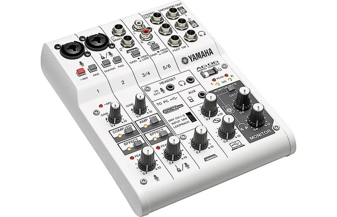 Armed with 24-bit/192kHz audio quality and innovative connectivity, the Yamaha AG06 USB mixer and audio...