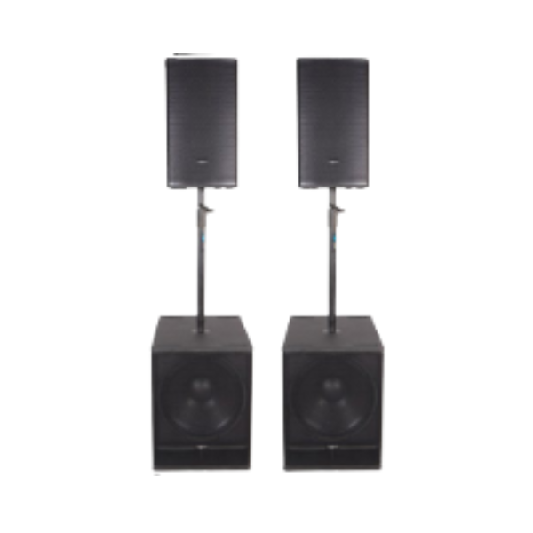 The system consists of: 2 x MA15+12″ Powered Full Range 2 x MA11818″ Powered Sub...