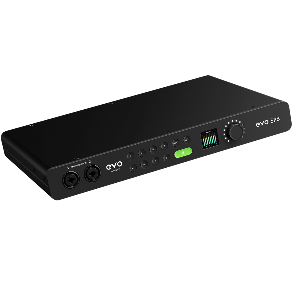 Bigger sessions demand more channels and expanding your existing audio interface via ADAT might be the most cost effective solution to scale up your studio. EVO SP8 provides eight mic/line inputs, eight line outputs and 2 x ADAT connections, giving you enough I/O firepower to easily tackle multi-mic sessions like recording drums, or taking on a full band.