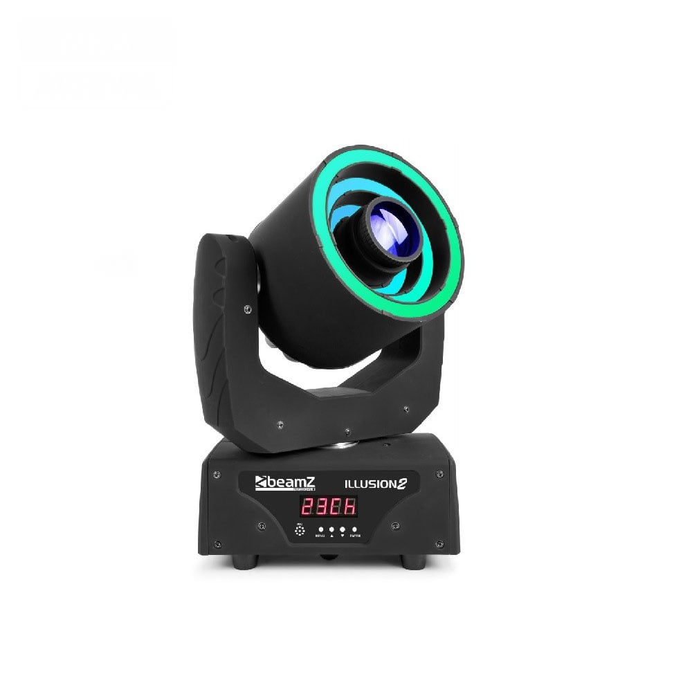 The BeamZ Illusion II of the BeamZ Professional series is a distinctive appearance between all other moving heads with its 3 LED rings.