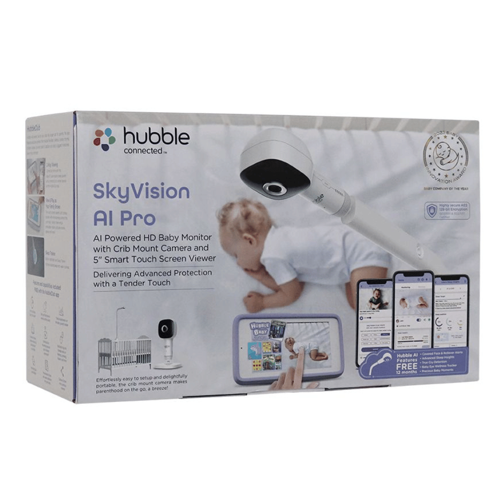 Experience the game-changing Hubble Connected SkyVision AI Pro Smart Baby Monitor, designed to deliver unrivaled safety, convenience, and entertainment for both babies and parents.