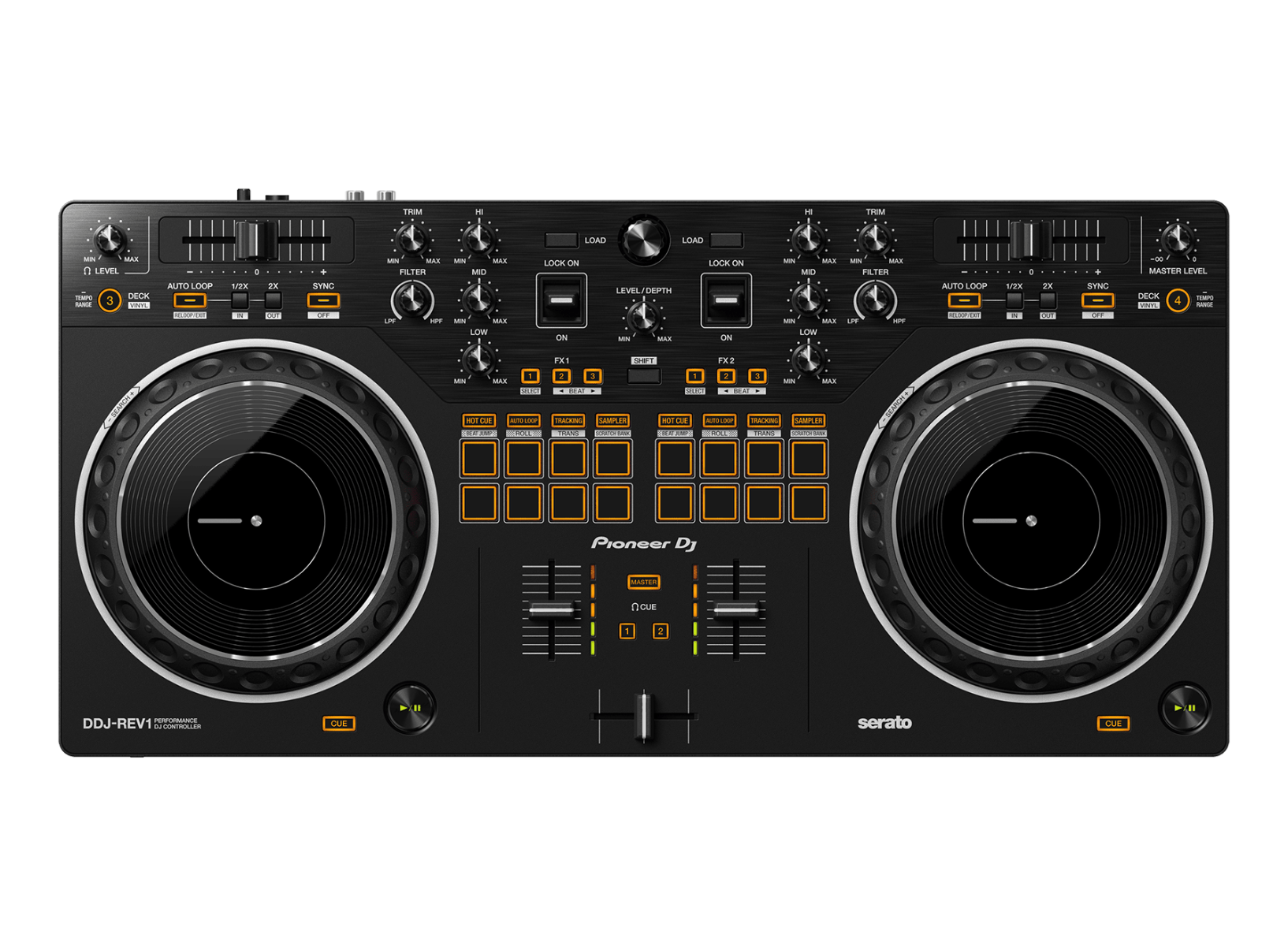 The DDJ-REV1 matches perfectly with the free Serato DJ Lite software, boasting a brand-new battle-style layout that’s easy to use and perfect for playing like a pro. The design of this 2-channel DJ controller emulates a professional DJM-S mixer + PLX turntable setup, including specialized features for open-format and scratch DJs.