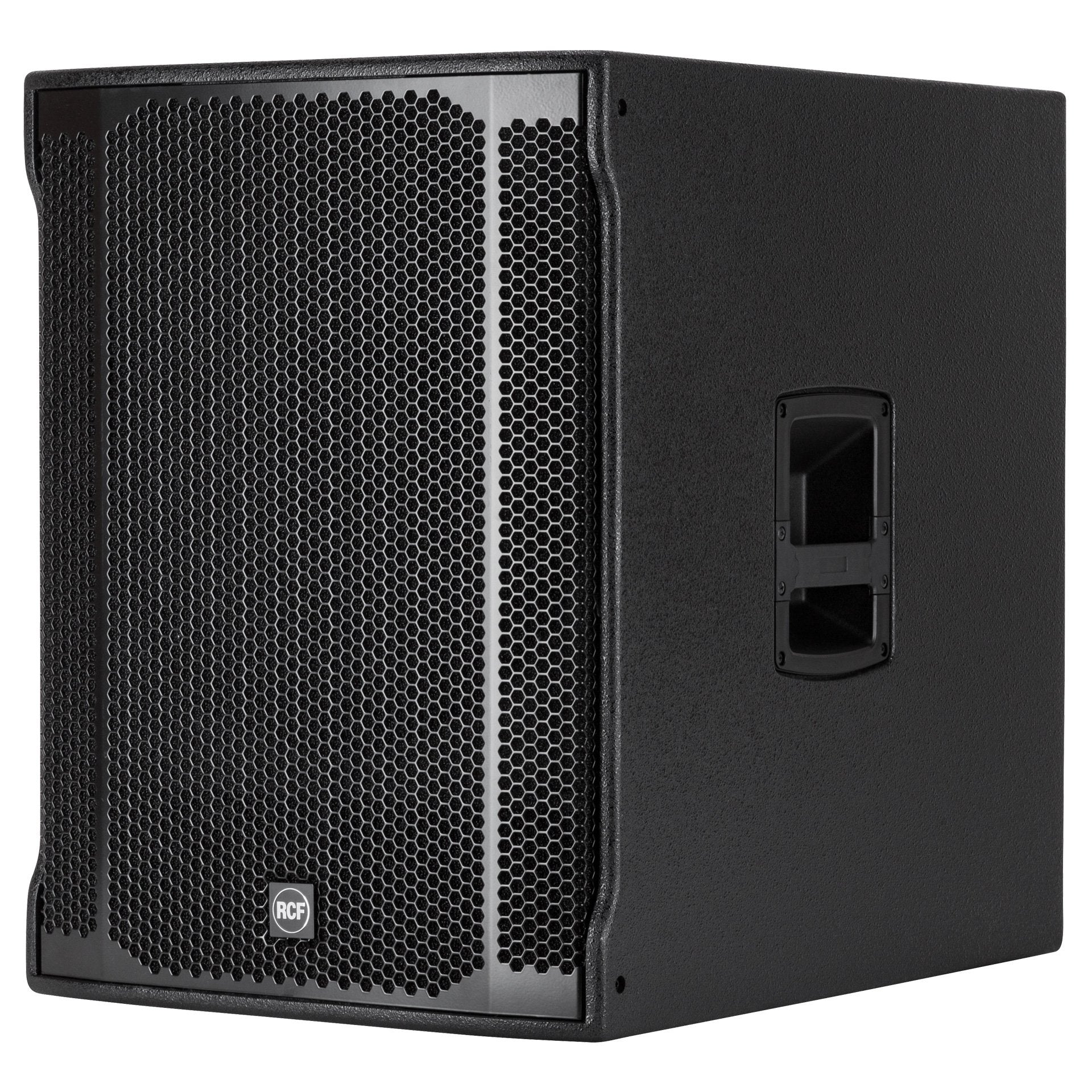 The RCF cabinets are made of the best multi-ply hardwood coated with a textured black finish. The subs are stackable and light-weight, for easy set-up and tear down, thanks to the ergonomic handles. A pole receptacle on top and side allows the use of the box in various configurations. The powder coated front grille integrates a special transparent-to-sound foam backing on the inside to further protect the transducers from dust.