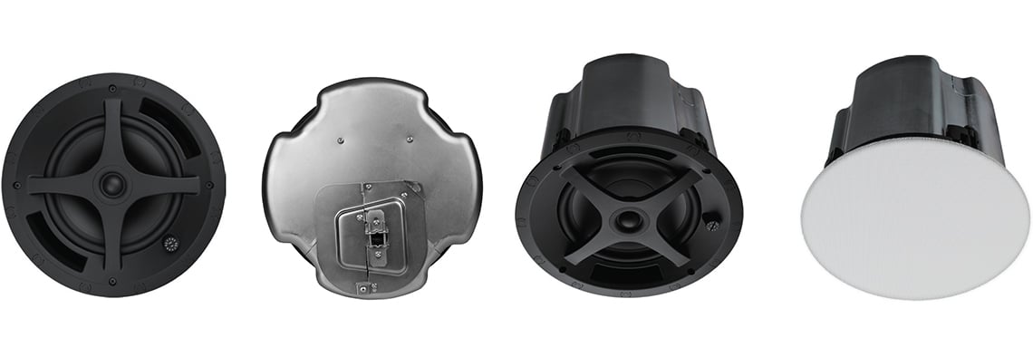 The optional Square Grille Adapter allows speakers to match the aesthetic of square downlights and HVAC grilles to achieve continual sight lines.