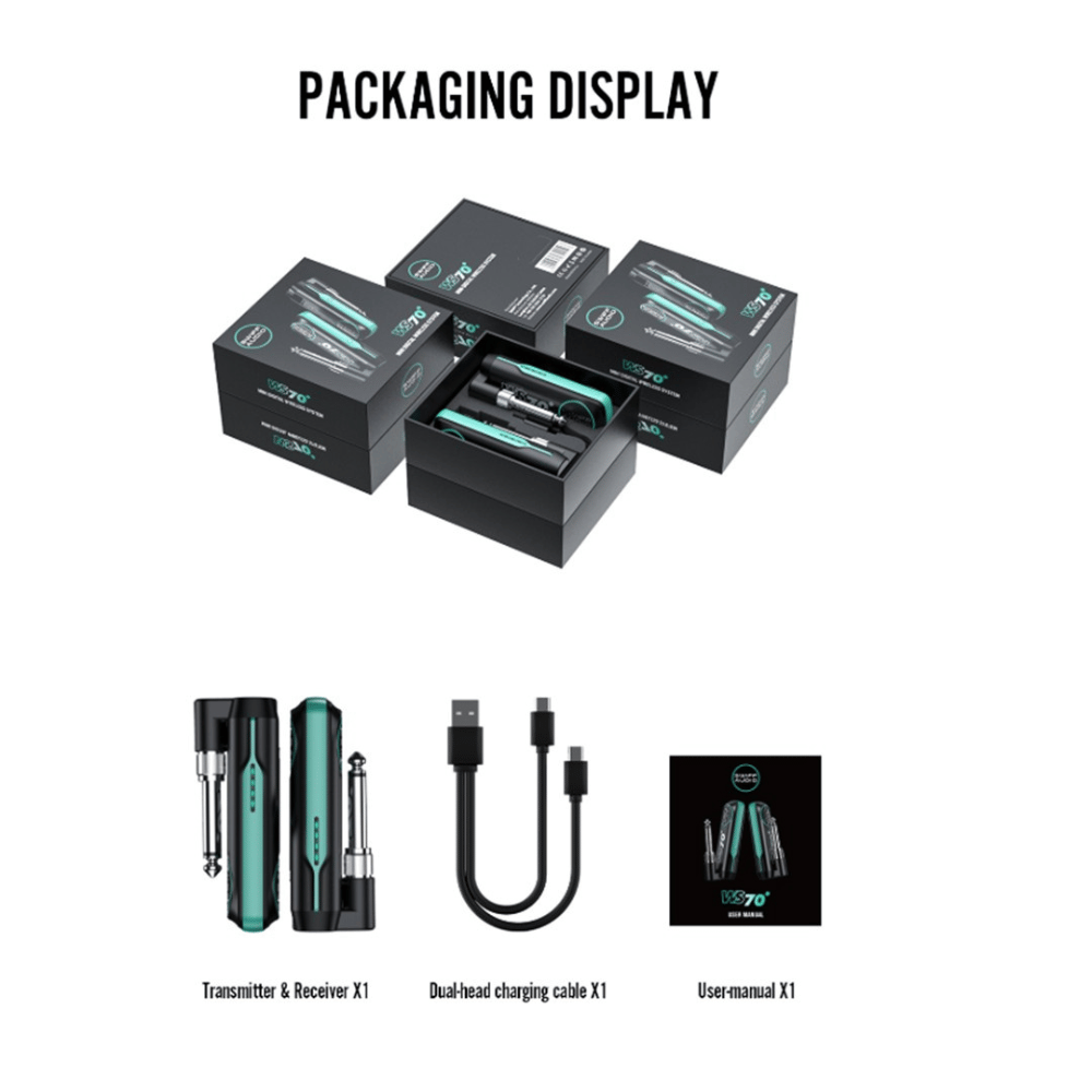 Seamless Wireless Connectivity: The WS-70+ connects easily using a 6.3mm jack, compatible with guitars, basses, and similar instruments. Its plug-and-play design ensures fast setup and performance readiness.