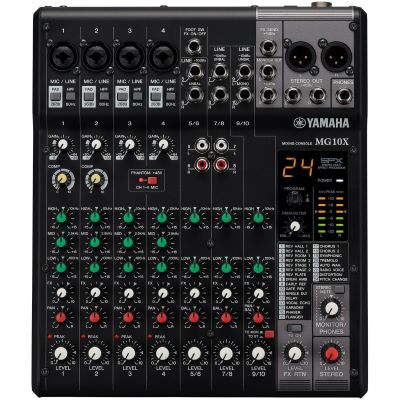Housed in a rugged steel chassis, the MG10X CV can accommodate up to 10 inputs and offers a balanced stereo output. Featuring D-Pre discrete Class A microphone preamplifiers for pristine sound, it includes an Aux bus for the built-in SPX effect with 24 presets and 2 channels of single knob compression. The MG10X can accept XLR, ¼” Phone and RCA type pin jack inputs, and offers XLR and Phone outputs. The MG10X offers rotary controls instead of faders, reducing the footprint for discrete placement onstage or anywhere space is a premium. A footswitch input allows hands free effect muting.